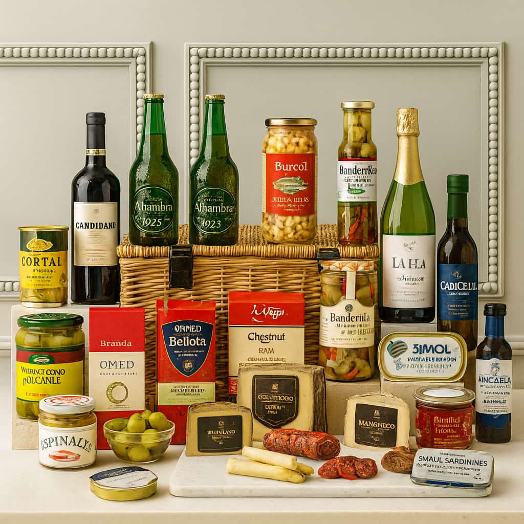 To sweeten the experience, enjoy chestnut blossom honey and artisan Burcol Spanish white beans, perfect for creating traditional regional recipes. Complement your feast with an outstanding selection of drinks: the Alhambra Reserva 1925 beer, the smooth Candidato Tempranillo, the La Fea Cava Brut (organic sparkling wine), and the refined Micaela Manzanilla sherry, offering an authentic taste of Andalusia.